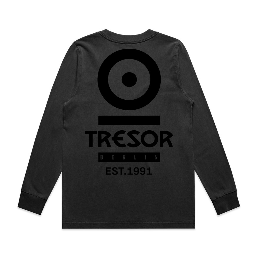black logo screen print faded black Longsleeve heavy weight, 240 GSM, 16-singles, 100% carded cotton fitted cut preshrunk garment dyeside neck ribbing